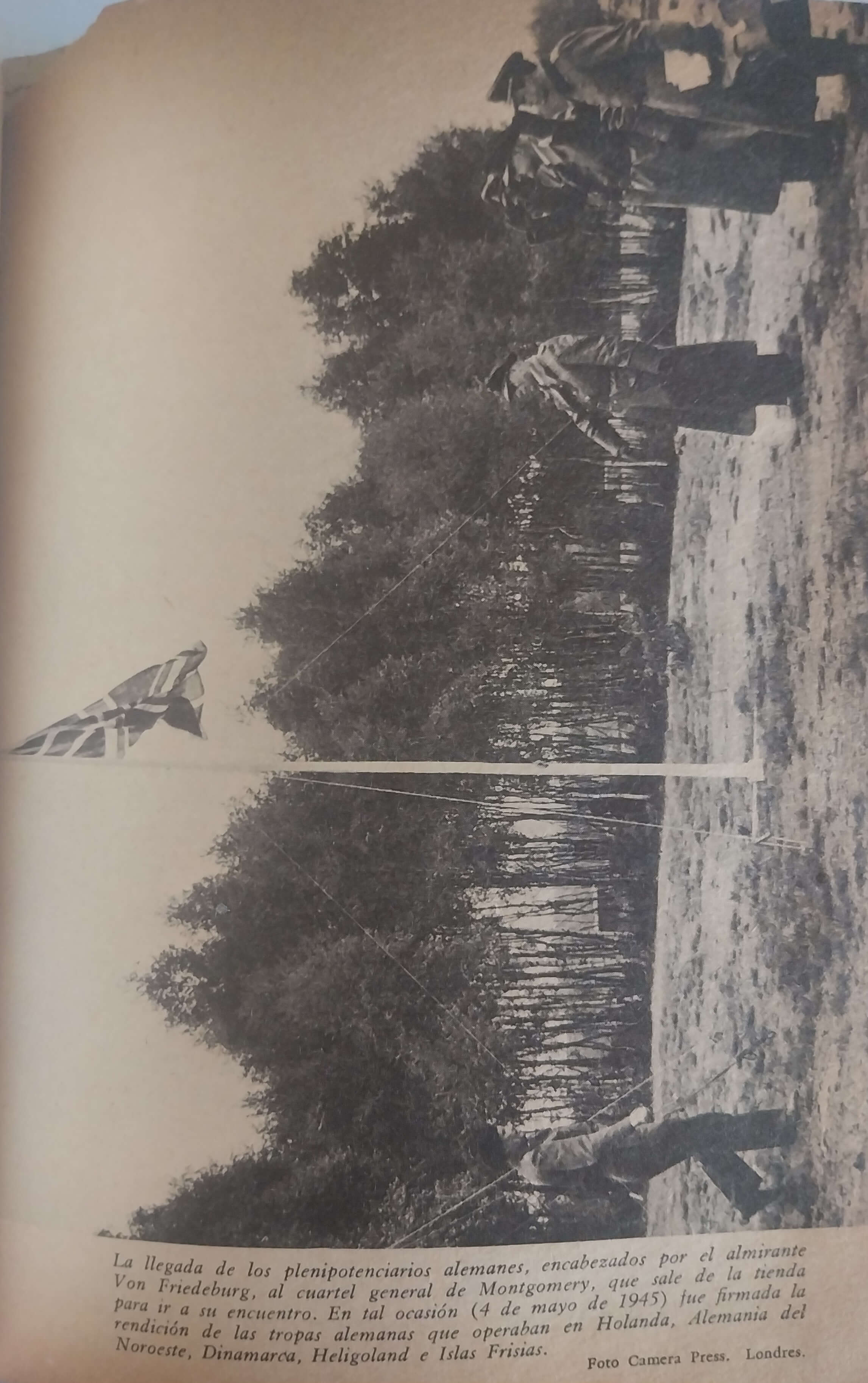Tal era la delicada situación que existía cuando dos oficiales alemanes, el almirante Hans Georg von Friedeburg y el coronel Fritz Poleck, llegaron al cuartel general del mariscal de campo Montgomery el día 4 de mayo. Iban enviados por el gobierno del almirante Karl Doenitz —que había asumido el poder al morir Hitler— para negociar la rendición de lo que aún quedaba del Tercer Reich. Pero Montgomery carecía de facultades para entrar en arreglos con los comisionados y los remitió a Eisenhower, quien se encontraba en su cuartel general de avanzada en la ciudad de Reims.