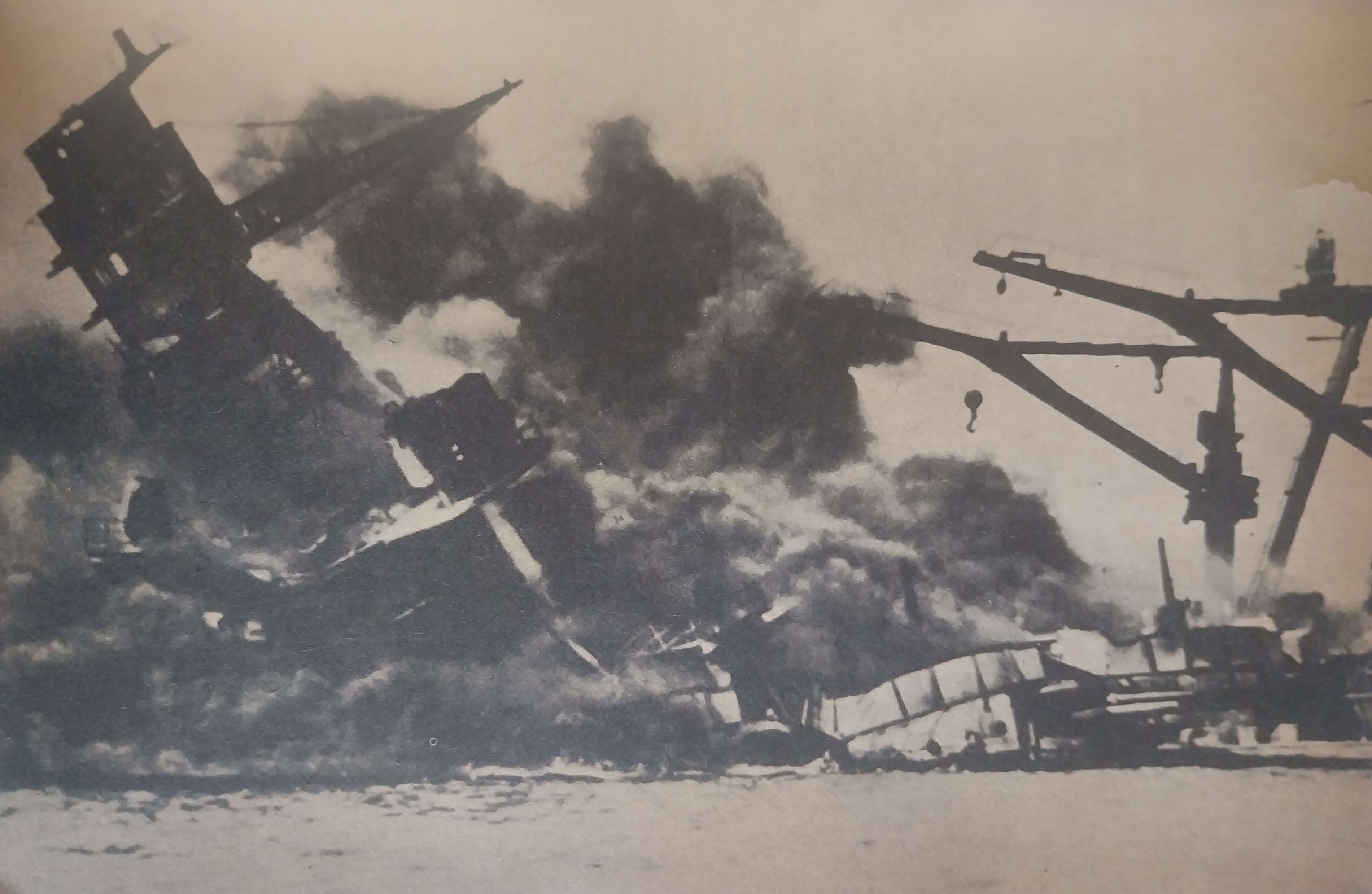 DESDE EL 7 de diciembre de 1941, los norteamericanos han estado discutiendo quién fué responsable del desastre de Pearl Harbor. Y con razón, pues ese ataque de sorpresa que llevaron a cabo 353 aviones japoneses fué sin duda una de las victorias militares menos costost de la historia. Cuando terminó (sólo duró unas dos horas) los ocho acorazados norteamericanos que se encontraban en el puerto habían sido hundidos o averiados, y muchos de los cruceros y destructores también fueron alcanzados por las bombas. Las seis grandes bases de Oahu estaban arruinadas y casi todos sus aviones destruídos. Más de 2.400 vidas se habían perdido. Los japoneses, en cambio, de vuelta en sus portaaviones, comprobaron una pérdida de tan sólo 29 aviones y 55 hombres.